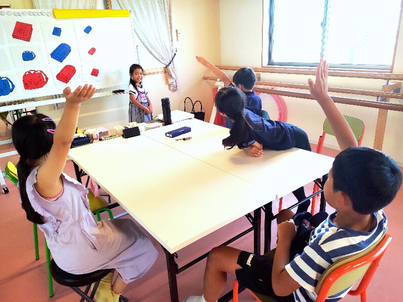 このクラス最年少の小学2年生が先生役。全員の手がいっせいに上がります。