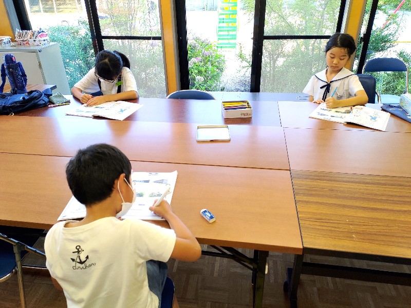 自分が通っている学校を思い出しながら、一生懸命絵を描いて・・・
