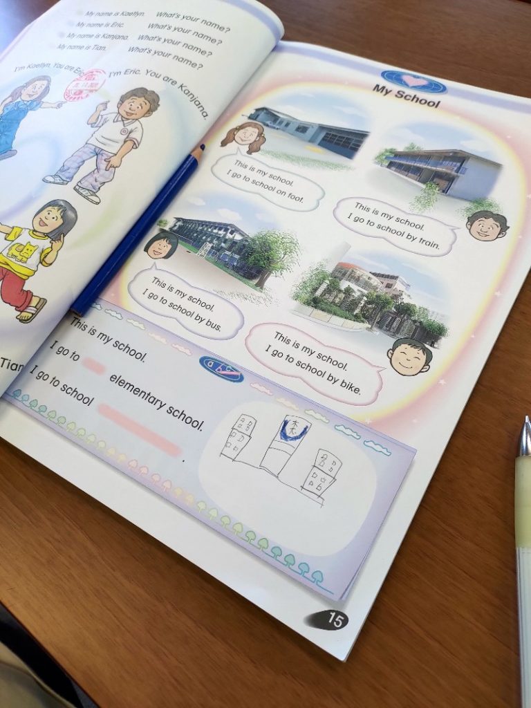 今週はいよい発表、自分が通っている学校について「英語でスピーチ」の予定です。