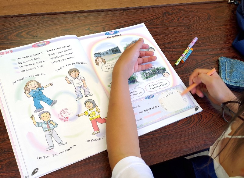 いっぽうこちらは、小学生英会話・中級クラスの4年生。